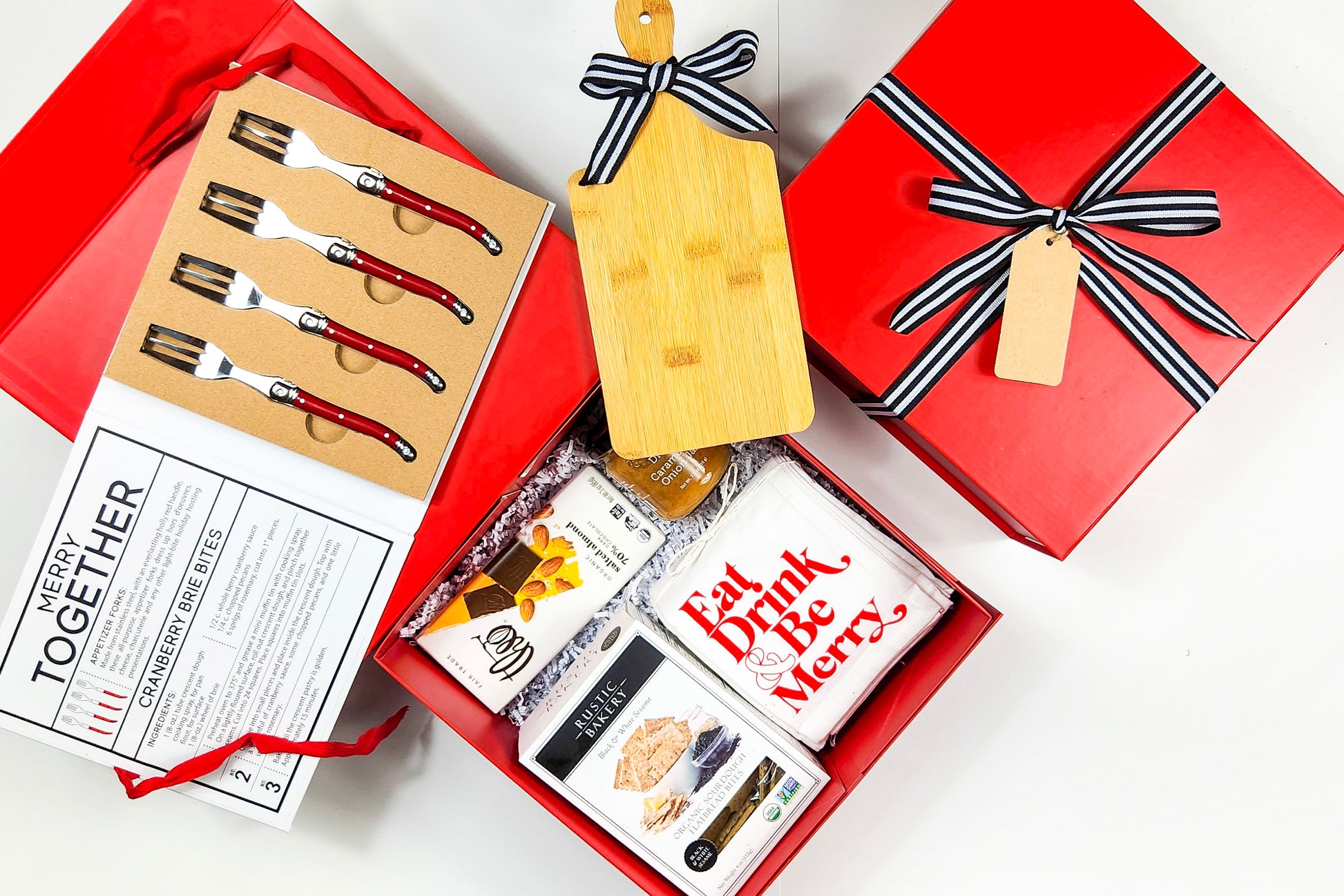Celebrate the season with our Eat, Drink, and Be Merry Holiday Gift Box, the perfect indulgence for food lovers and social butterflies alike! This curated collection features an exquisite selection of gourmet crackers, spreads, and appetizer tools.